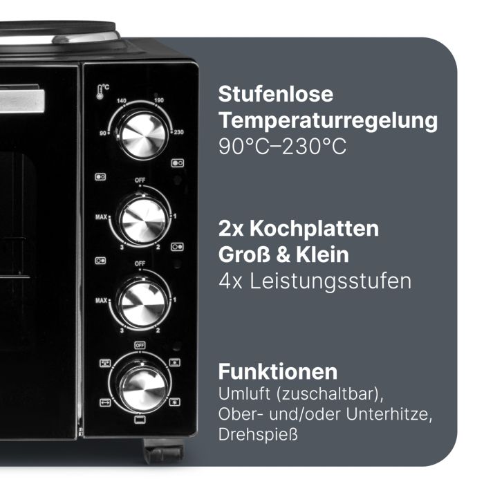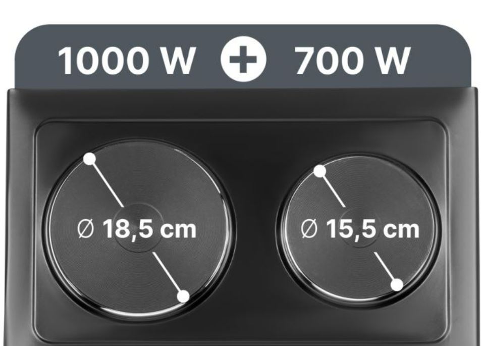 – 2 keeduala (Ø 18,5 cm + Ø 15,5 cm, eraldi lülitatavad)