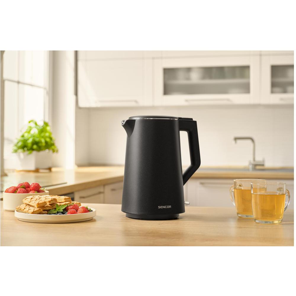 Veekeetja Sencor on kahekihiliste topeltseintega - roostevaba teras ja plastik.