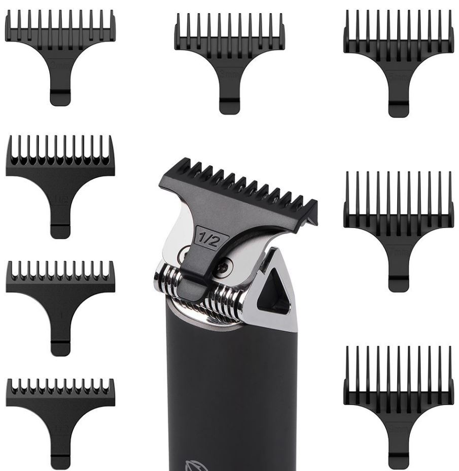 Trimmeril on kaheksa vahetatavat otsakut, mis pakuvad laia valikut lõikepikkusi: 0,5 mm, 1 mm, 1,5 mm, 2 mm, 3 mm, 5 mm, 7 mm ja 9 mm. Need otsikud võimaldavad lõikepikkust täpselt reguleerida vastavalt oma stiilile, olenemata sellest, kas eelistate väga lühikest trimmimist või veidi pikemat stiili. Iga otsik on loodud hõlpsaks kokkupanekuks ja mugavaks kasutamiseks, muutes trimmeri uskumatult mitmekülgseks ja ideaalseks igapäevaseks hoolduseks.