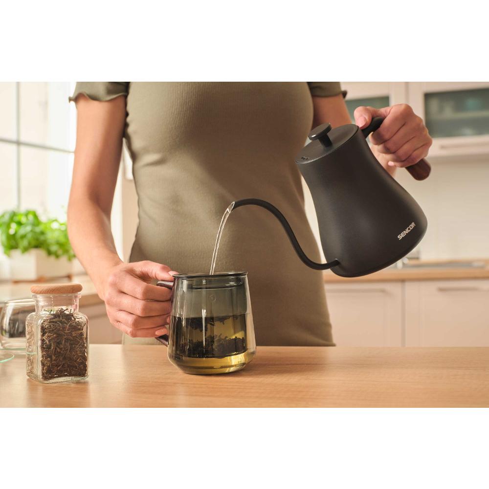 Selle esmaklassilise 0,6-liitrise roostevabast terasest Sencori veekeetjaga valmistad teed ja kohvi nagu barista.