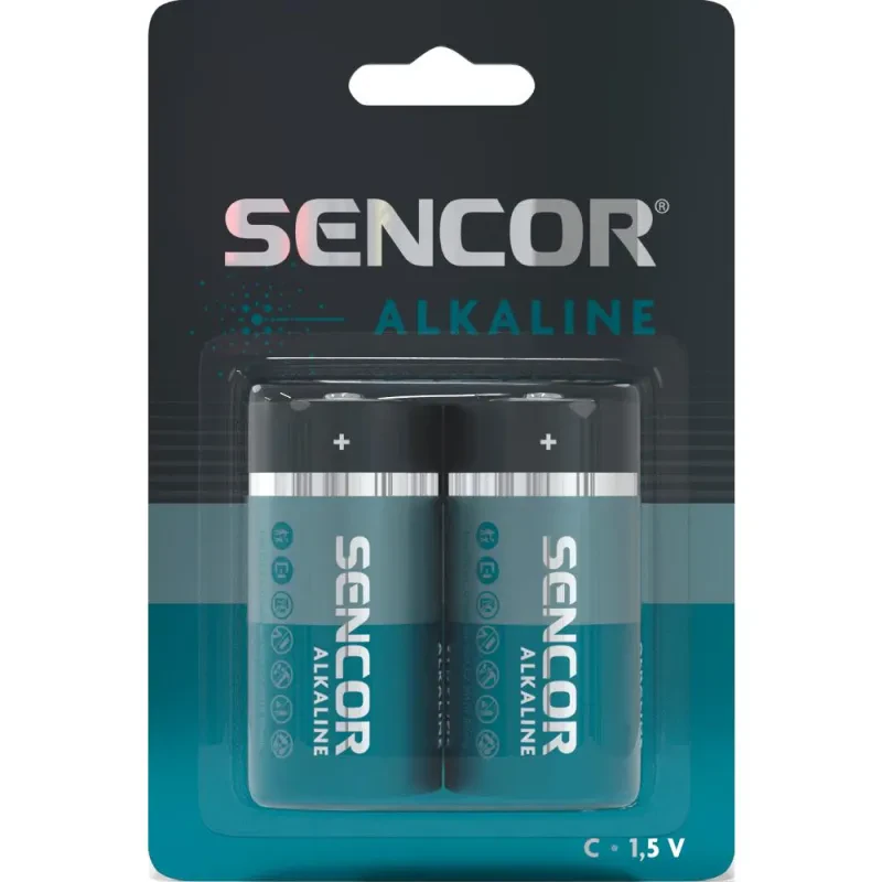 Щелочные универсальные одноразовые батарейки Sencor LR14 для устройств с высоким энергопотреблением.