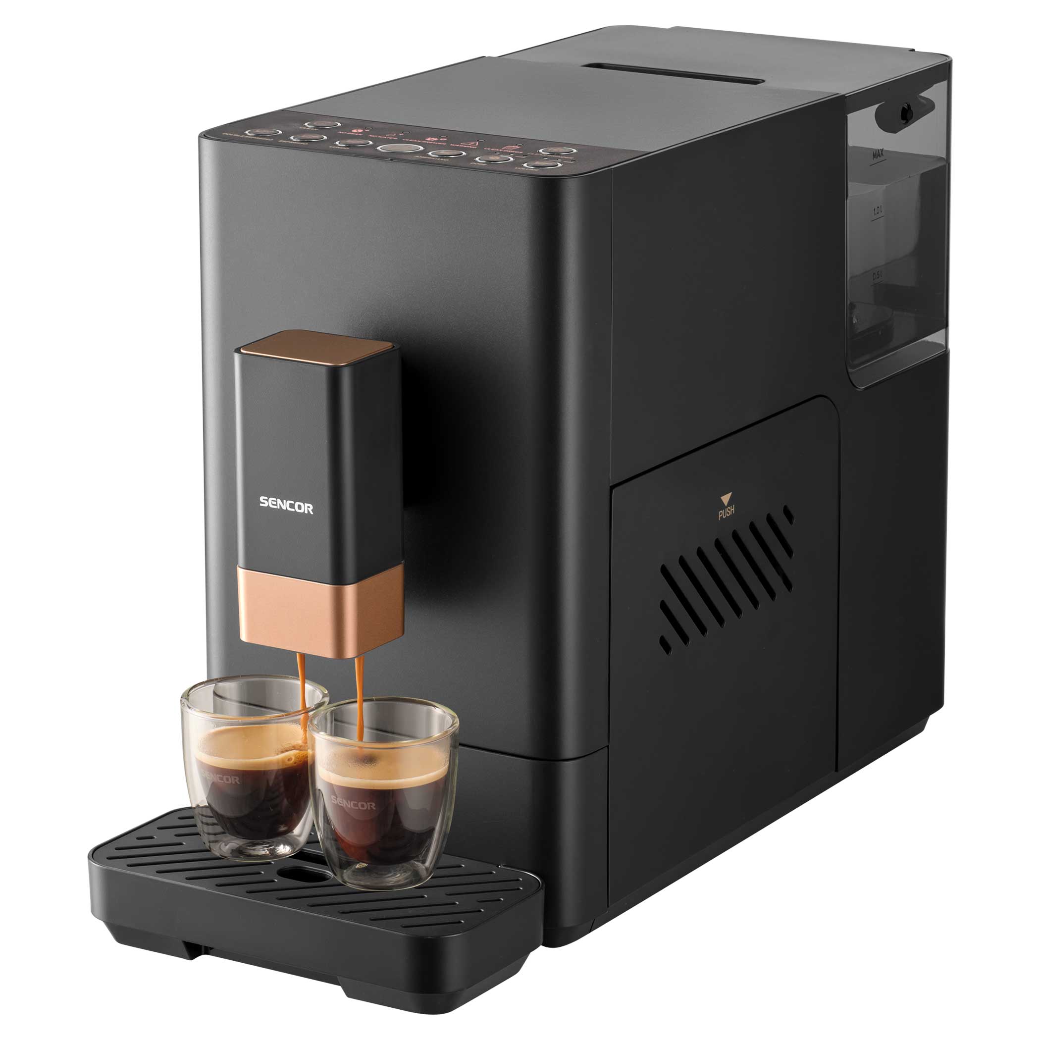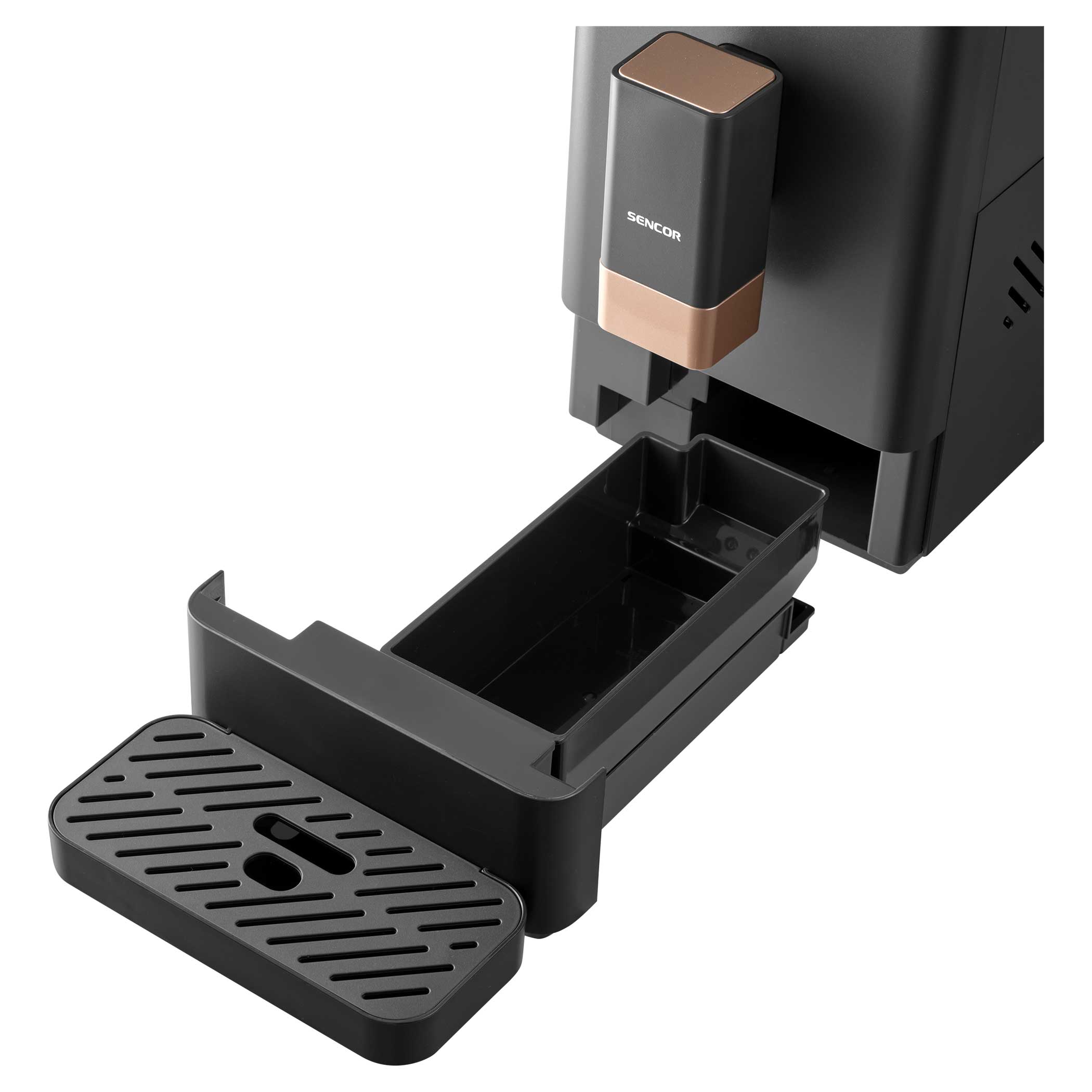 Откройте для себя тонкую и компактную кофемашину эспрессо Sencor SES6100BK – всего 18 см шириной – идеальное сочетание производительности и элегантности!