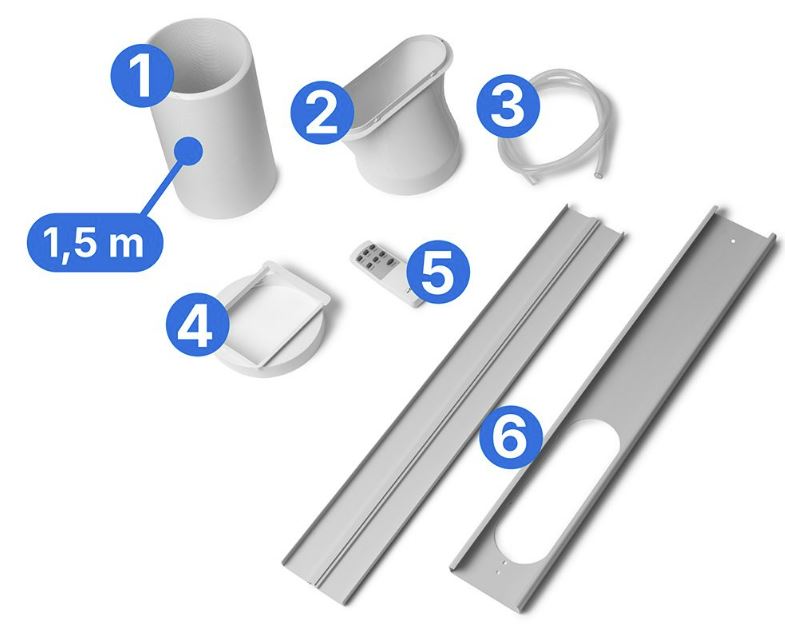 В комплекте выпускной шланг 1,5 м и комплект для окна