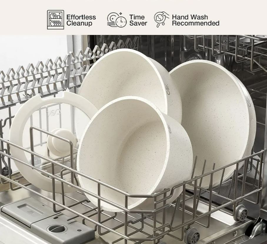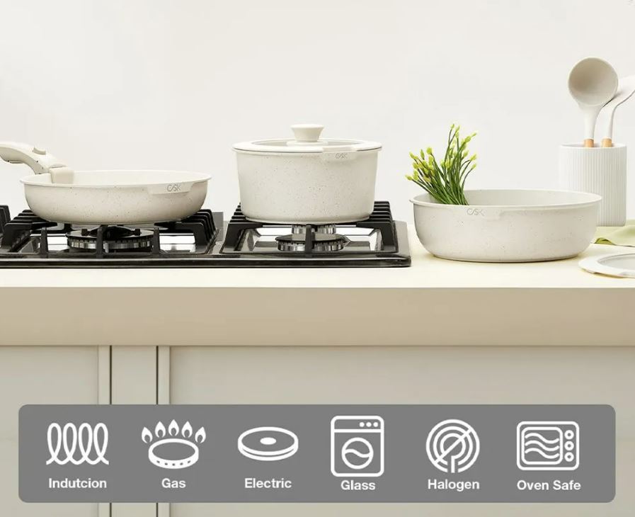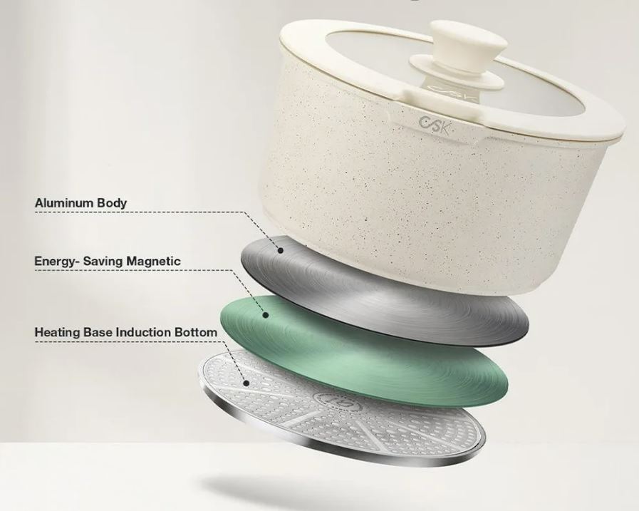 Нетоксичное антипригарное покрытие - кухонная посуда KOCH SYSTEME CS оснащена трехслойным мраморным антипригарным покрытием для легкого приготовления пищи без прилипания. Не содержит PFAS, PTFE, PFOA, свинца и кадмия, что позволяет готовить более здоровую пищу.