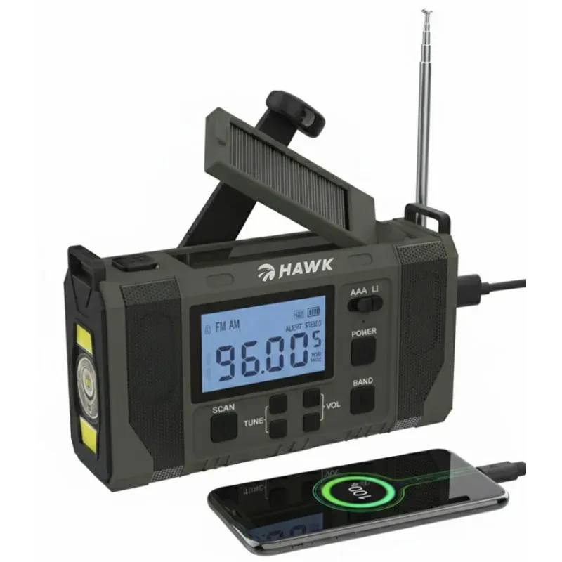 Аварийное радио с ручкой — надежный источник информации при отключении электроэнергии. Благодаря встроенной ручке его можно заряжать в любом месте — без розетки или повербанка. Это идеальный выбор для отключений электричества, штормов, походов и чрезвычайных ситуаций. Внимание! Однако оно не должно быть основным источником питания.
