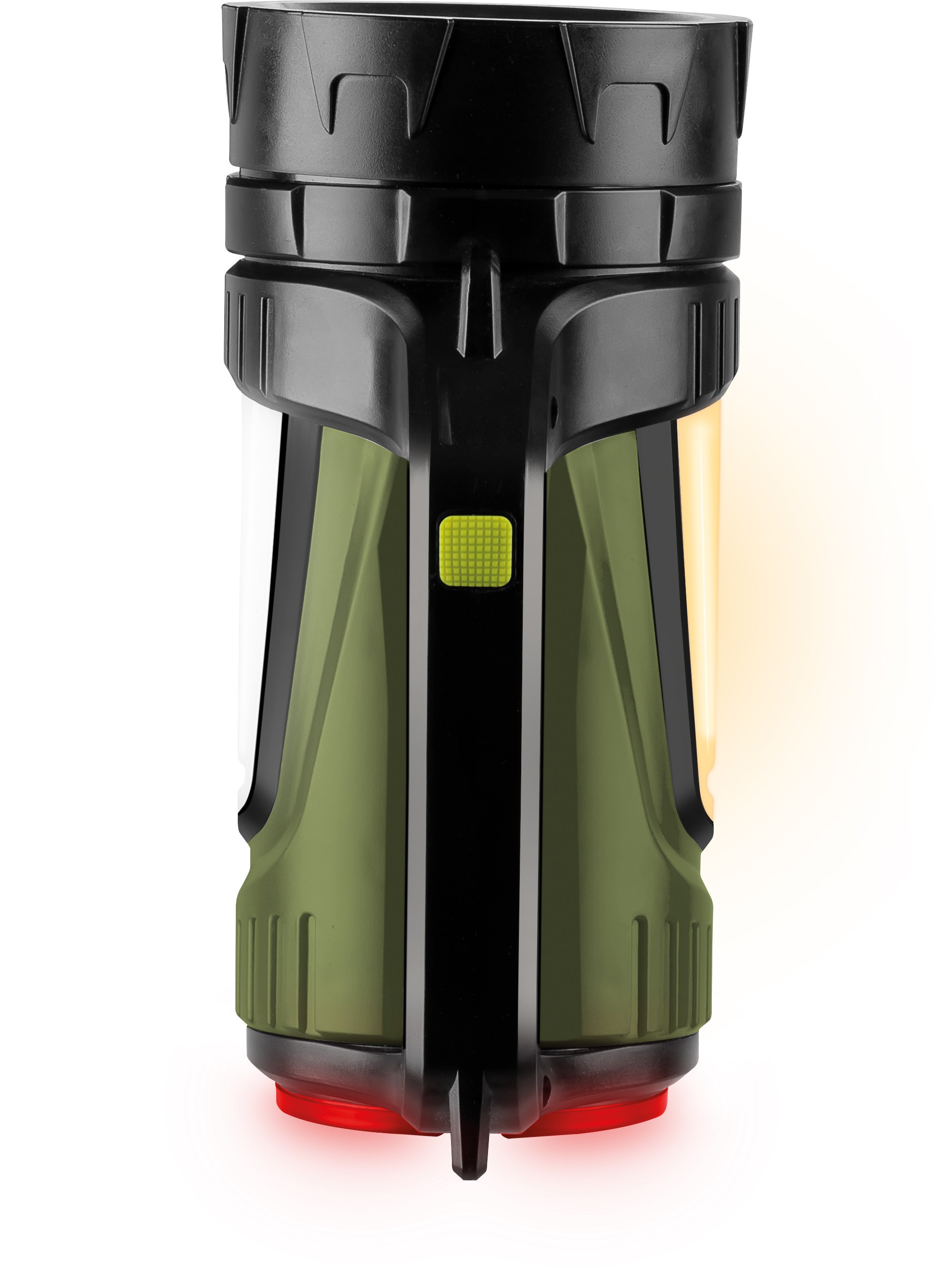 The flashlight also has two side COB Led lights and a red warning light at the rear.