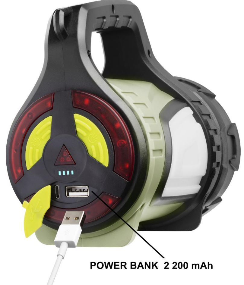 This multi-purpose flashlight is a practical helper with a 5W headlight and the ability to recharge your mobile phone, tablet, or other electronics thanks to Powerbank's functions.