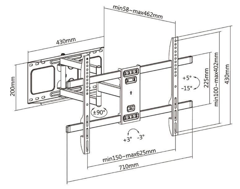 Выдвижное и регулируемое крепление для телевизора 37"-70"