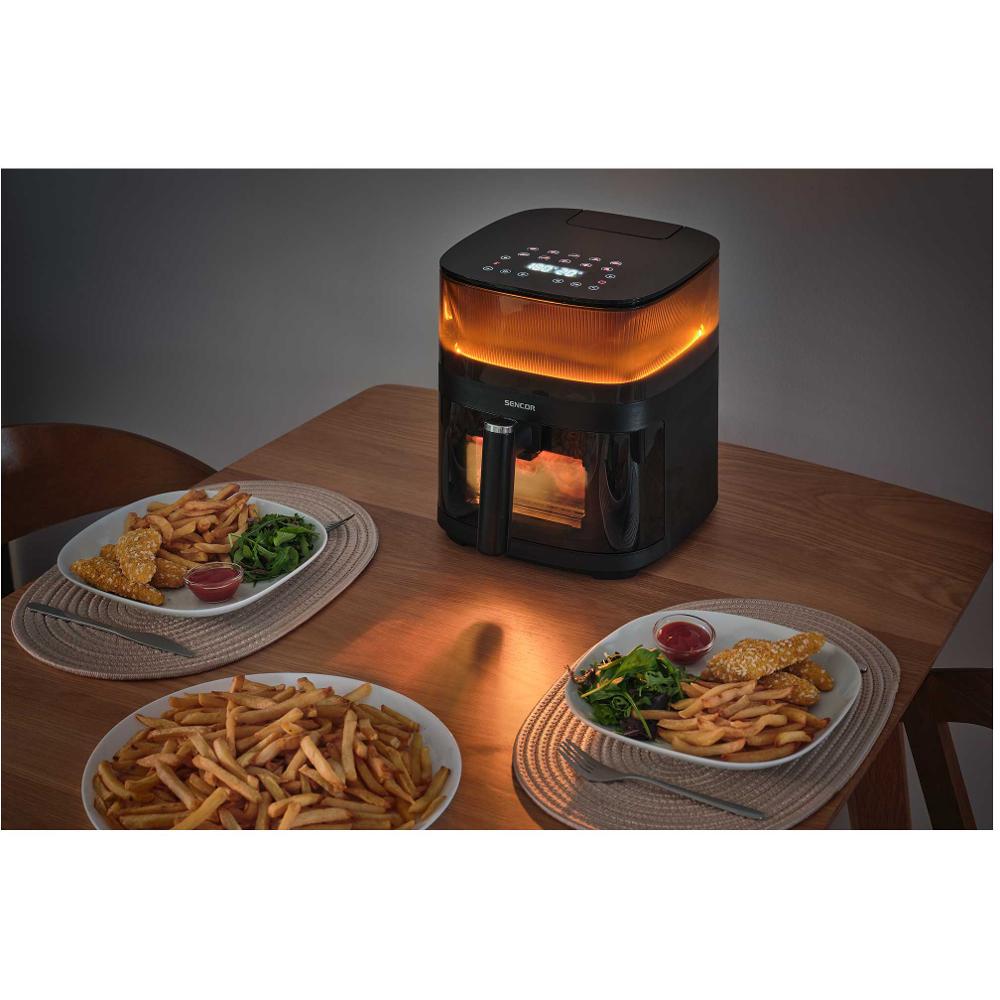 Фритюрница с горячим воздухом Sencor SFR5050BK со стильной декоративной подсветкой готовит вкусную и здоровую пищу без масла!